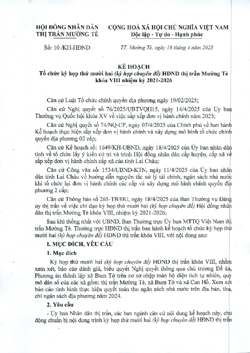 | 5 | Số 1649/KH-UBND | Kế hoạch Tổ chức lấy ý kiến cử tri và trình Hội đồng nhân dân cấp huyện, cấp xã về sắp xếp đơn vị hành chính cấp xã của tỉnh Lai Châu | UBND tỉnh Lai Châu | ||||